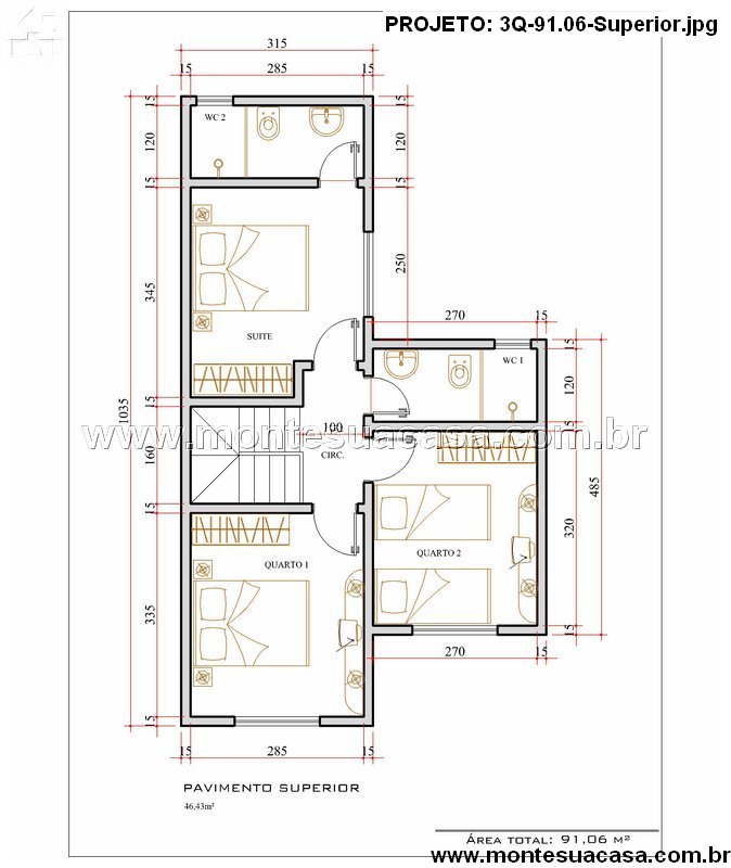 No pavimento superior, encontram-se os três dormitórios, sendo um deles suíte. O dormitório principal possui banheiro privativo e espaço para armários amplos, garantindo conforto e organização. Os quartos adicionais oferecem excelente iluminação e ventilação natural, ideais para crianças, hóspedes ou home office. Um banheiro social completo atende aos demais dormitórios, mantendo a praticidade da rotina familiar.
