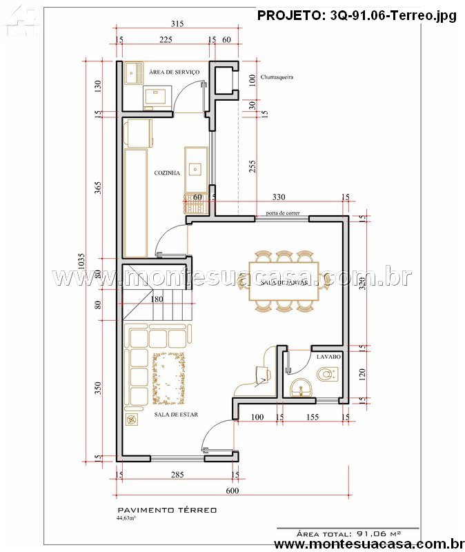 Este projeto de sobrado de 91,06 m² foi desenvolvido para quem busca conforto, funcionalidade e elegância em um espaço compacto e bem aproveitado. O pavimento térreo integra os ambientes de convivência, proporcionando fluidez e praticidade ao dia a dia. A ampla sala de estar conecta-se de forma harmoniosa com a sala de jantar, criando um ambiente convidativo e perfeito para receber amigos e familiares.