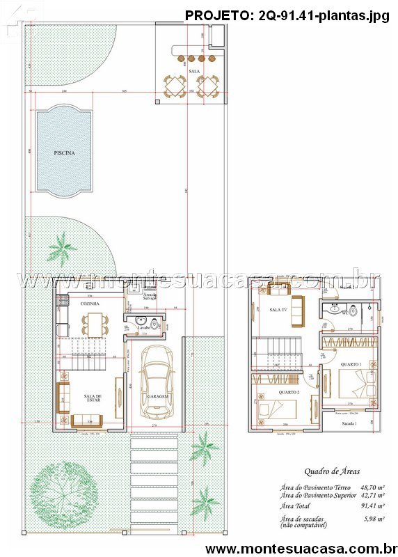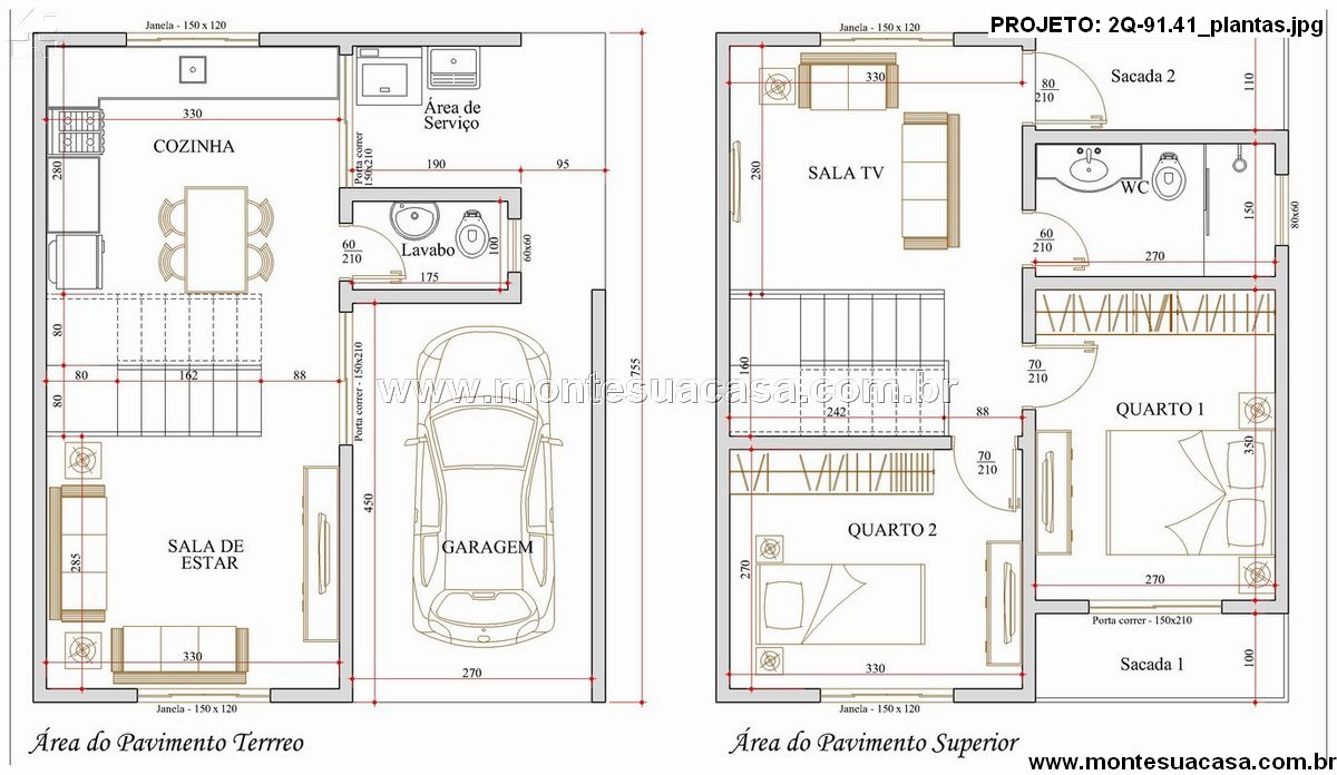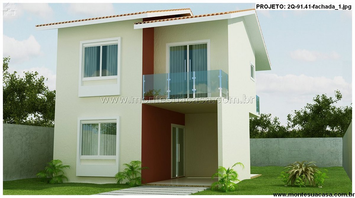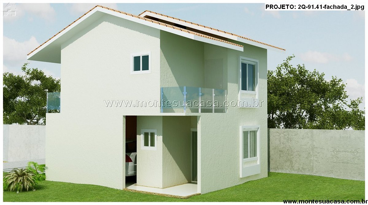 Projeto de Sobrado com 2 Quartos e Sacada – 91,41m²