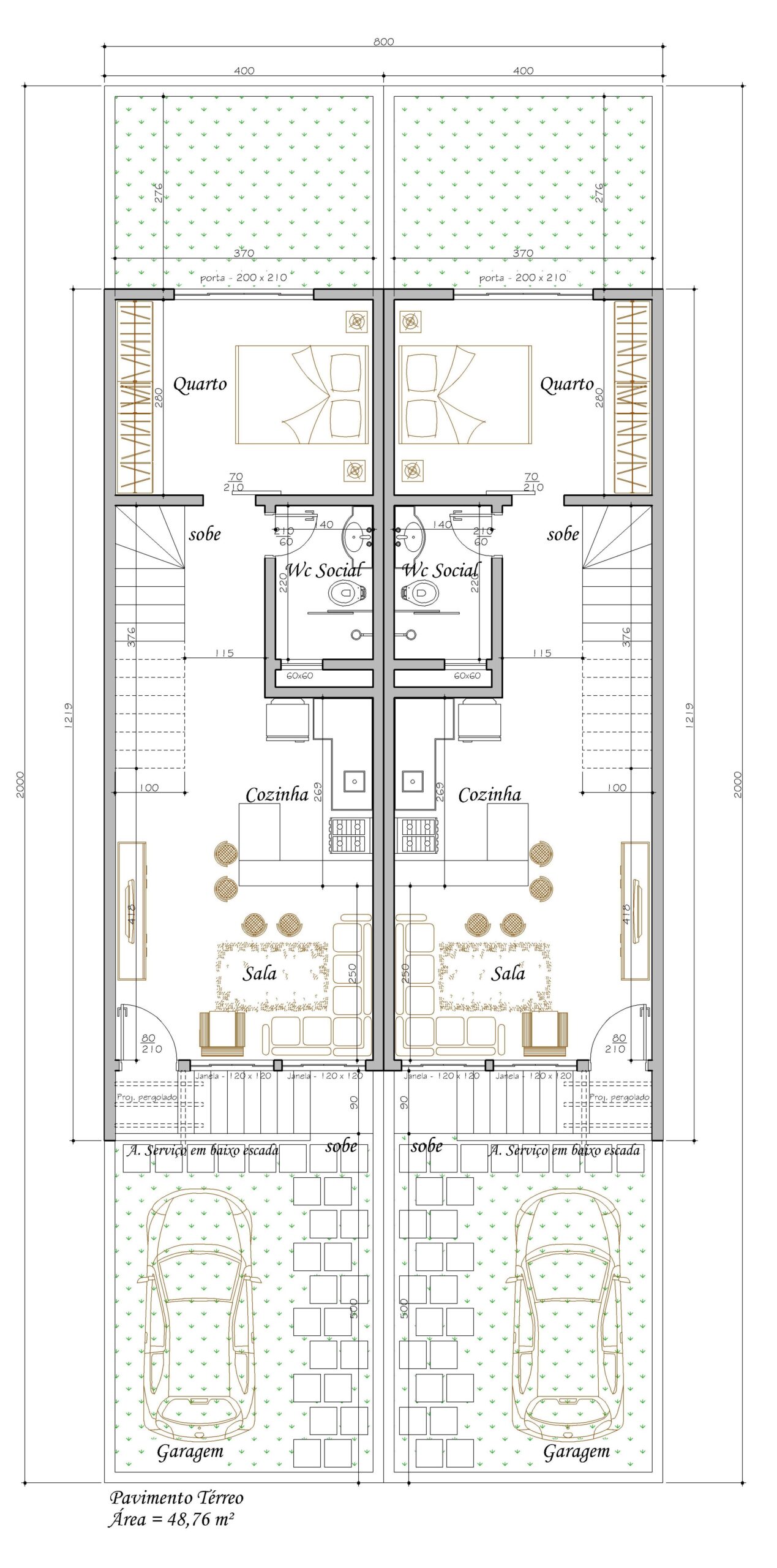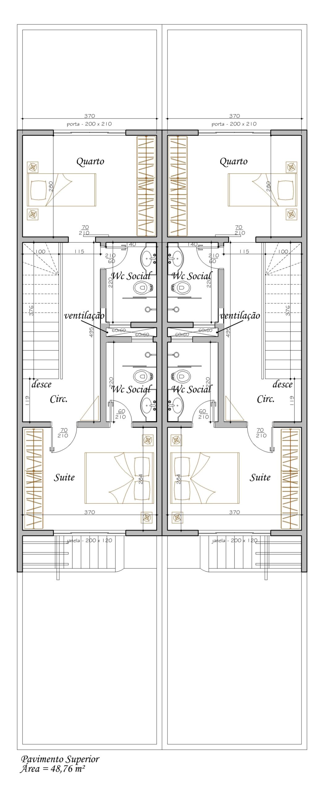 Este sobrado atende famílias que buscam um imóvel compacto, moderno e com três dormitórios completos. A planta permite execução rápida, custo controlado e adaptações conforme o cliente, sem comprometer a estética ou o desempenho.