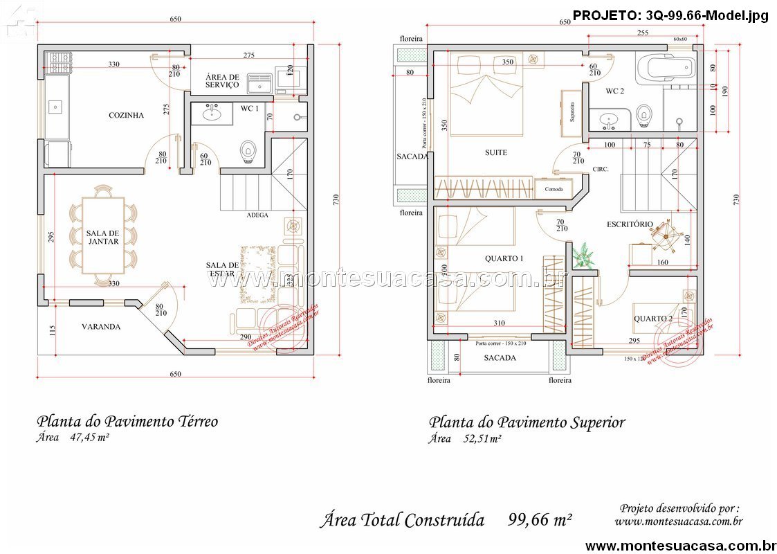 Com área total construída de 99,66 m², este sobrado combina funcionalidade, conforto e estética contemporânea. O pavimento térreo oferece uma planta integrada e bem distribuída, ideal para famílias que valorizam ambientes amplos e bem iluminados.