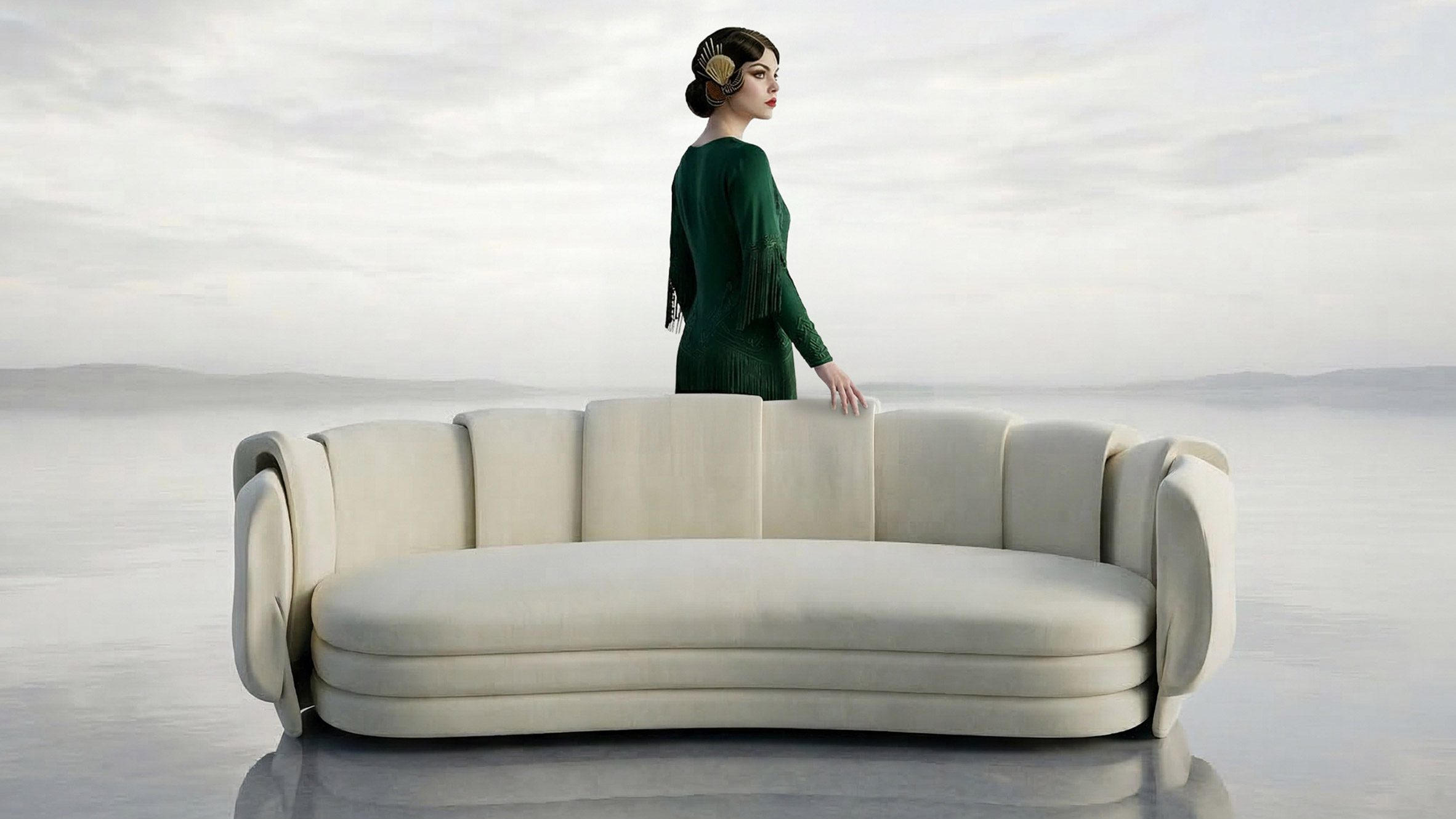 “O sofá Mirai apresenta volumes que evocam painéis de tecido em camadas fluindo horizontalmente, como seda em movimento”, disse a equipe.