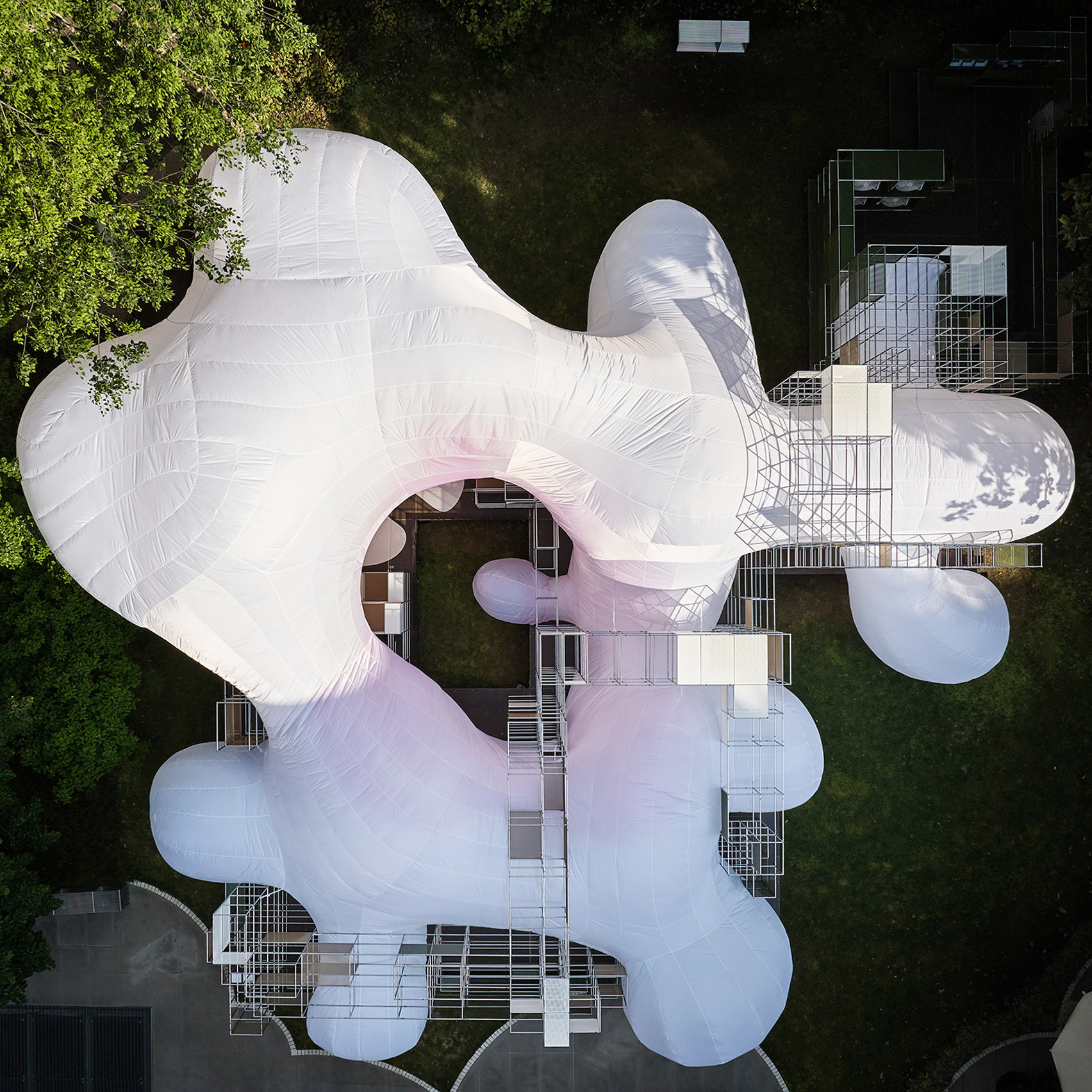 Hospedado no jardim do Fundação Luigi Rovati museu, a instalação é a mais recente iteração da exploração de Schneider em espaços transformadores projetados para evocar conforto, pertencimento e bem-estar.