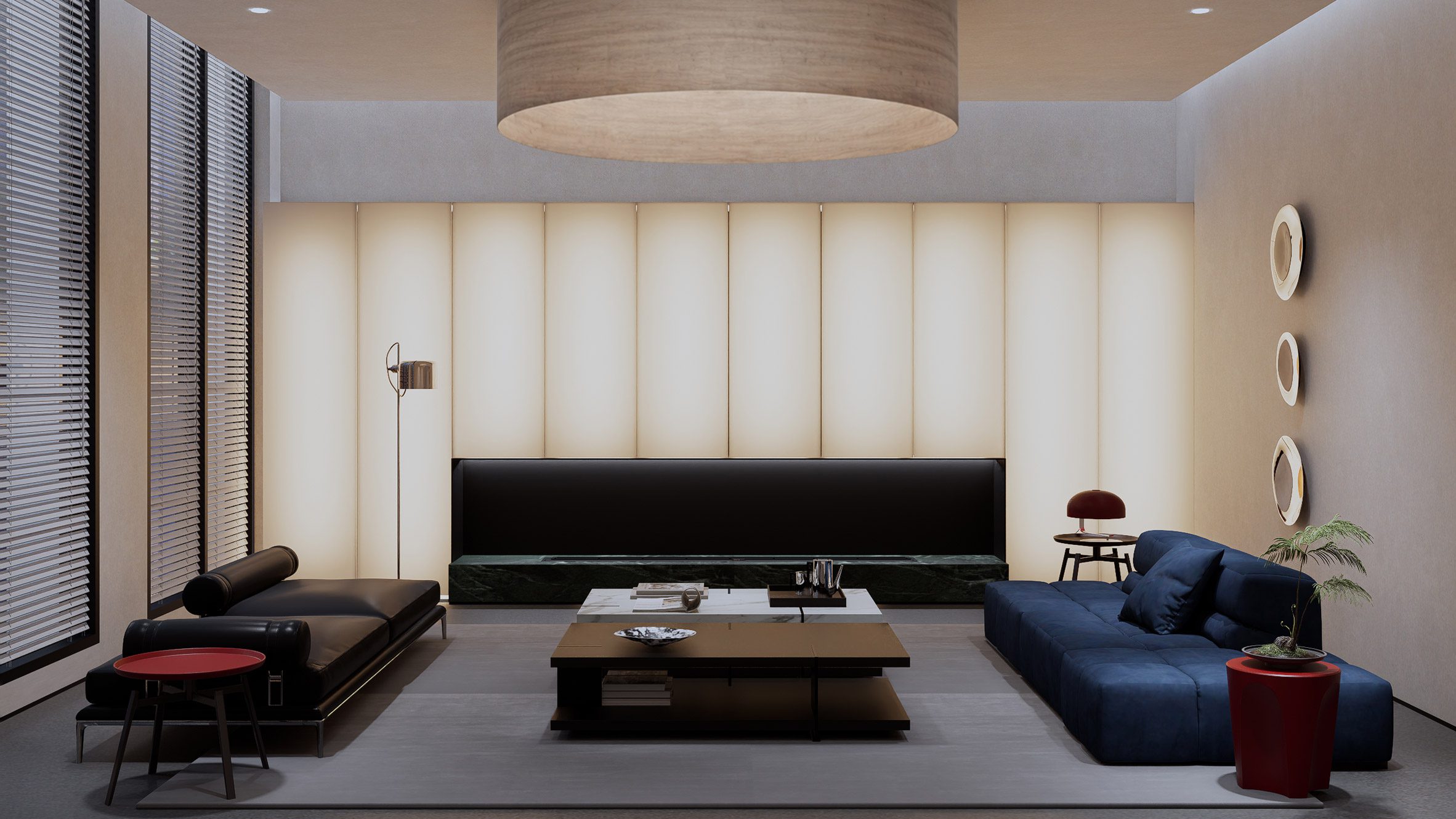 Quando retroiluminada, a superfície translúcida difunde a luz de maneira uniforme através de uma escolha de nove padrões de superfície, desde cores sólidas até grãos de madeira hiper-realistas e estilos de pedra.