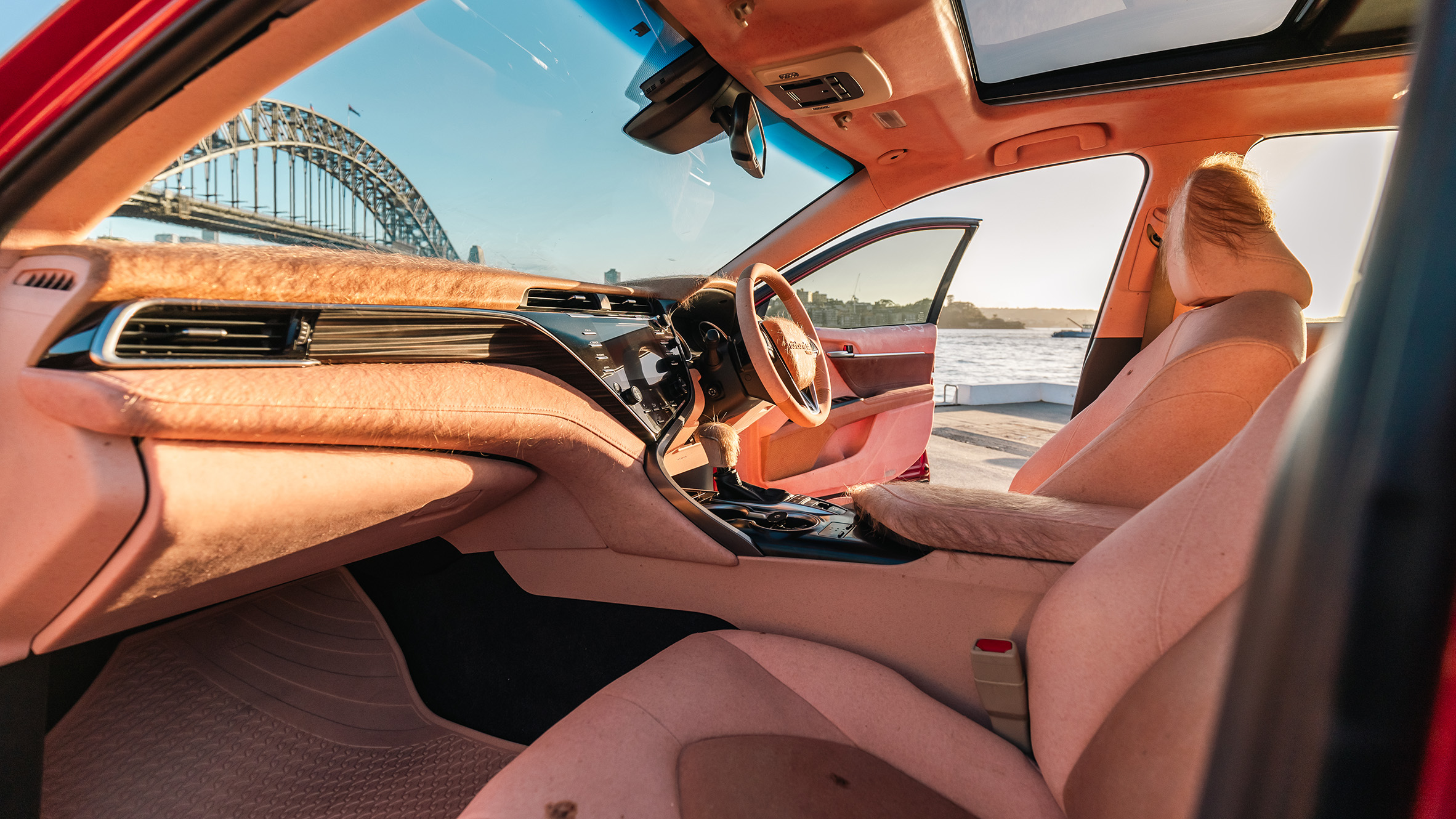 Projetado para parecer incrivelmente realista, o Carro queimado de sol apresenta painel, painéis internos e assentos feitos de “pele” de silicone com tinta que muda de cor e responde à luz ultravioleta.