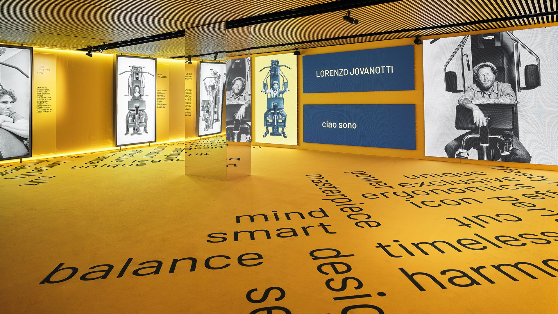 A instalação está exposta na Technogym Milano na Via Durini, onde os visitantes são convidados a explorar a relação entre design, tecnologia e bem-estar pessoal.
