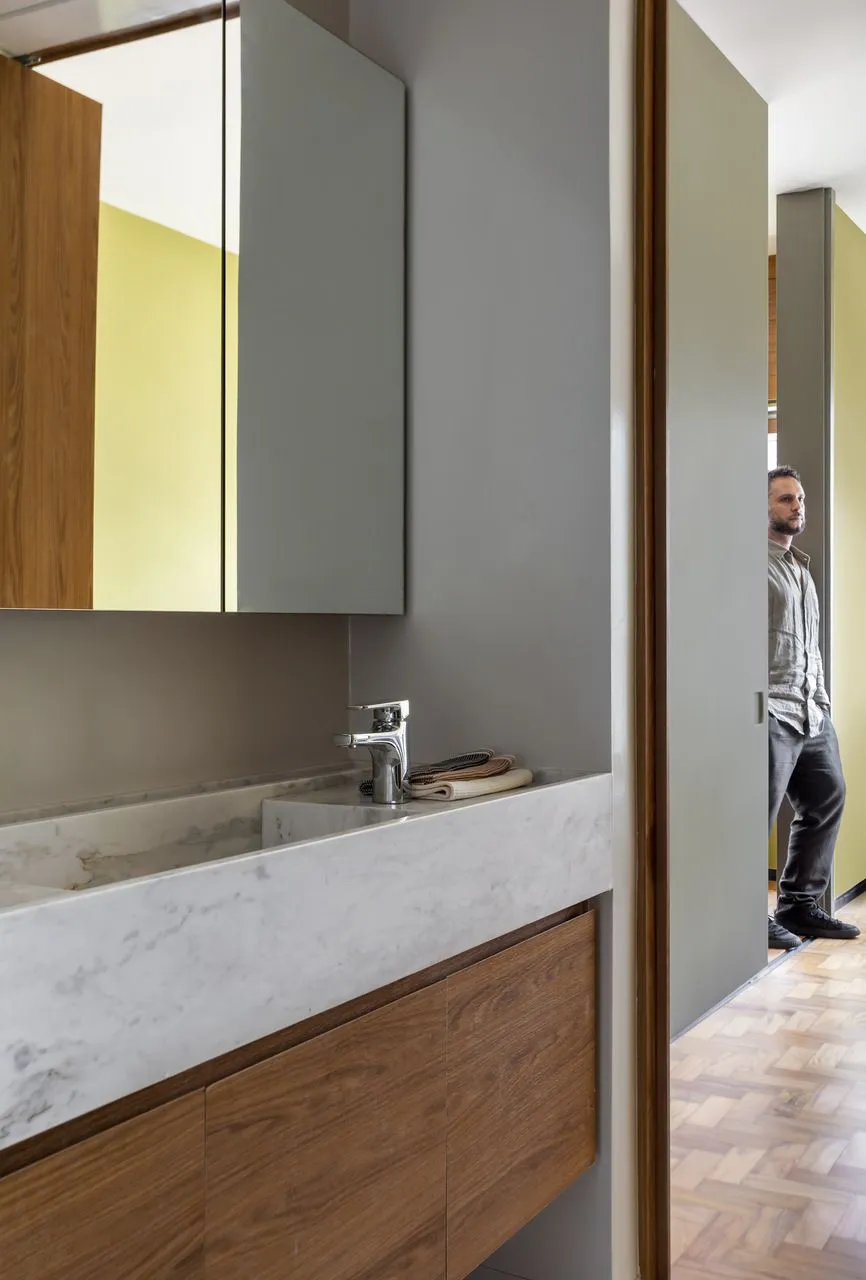 Hoje eu te convido para um Open House muito especial com um arquiteto que eu adoro acompanhar de perto. Foi uma visita “dois em um”, cheia de camadas, histórias e boas ideias: além de conhecer o apartamento de 65 m² assinado pelo arquiteto Eduardo F. Correia para uma cliente, visitei também o apê do próprio Edu, no mesmo edifício. Caminhar por esses projetos ao lado do autor foi uma oportunidade deliciosa de entender não só as escolhas estéticas, mas, sobretudo, o pensamento que orientou cada detalhe das reformas.