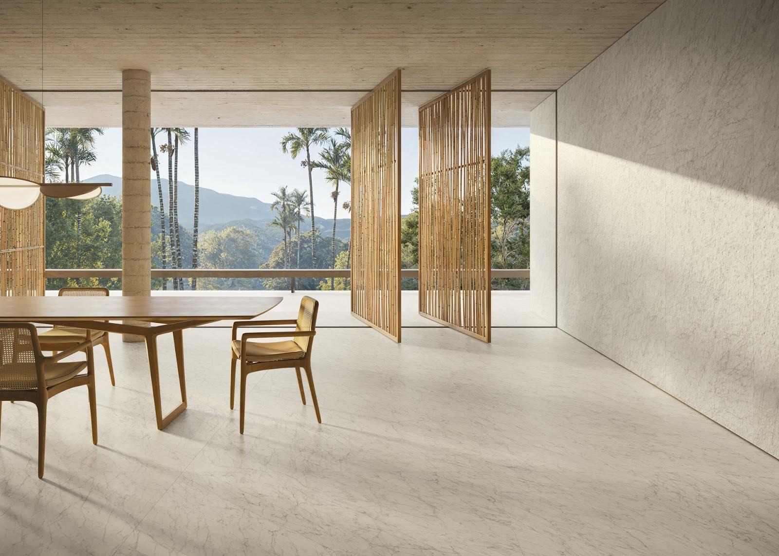Carrara Icon traz para o Preview Portobello 2026 diferentes soluções, que permitem seu uso em todos os espaços, seja em pisos ou paredes.