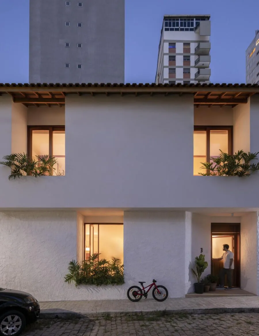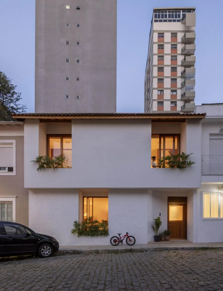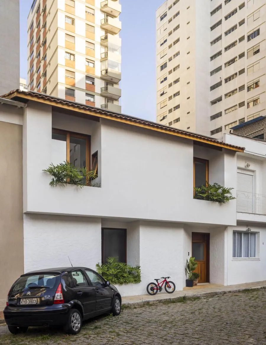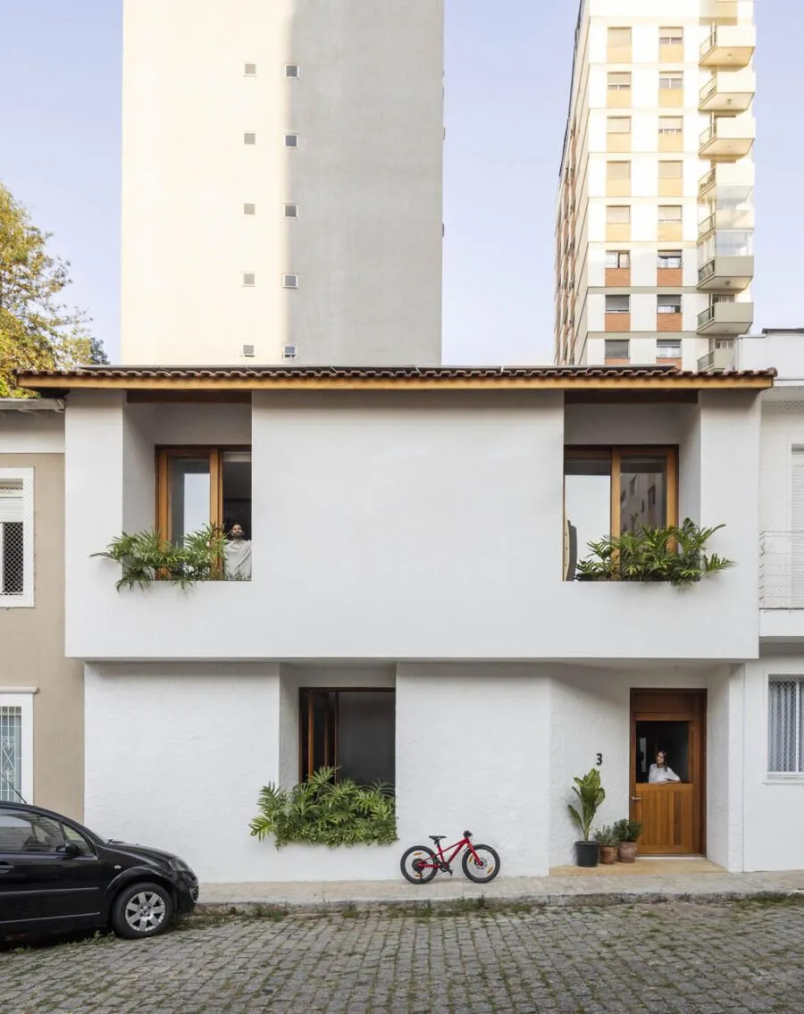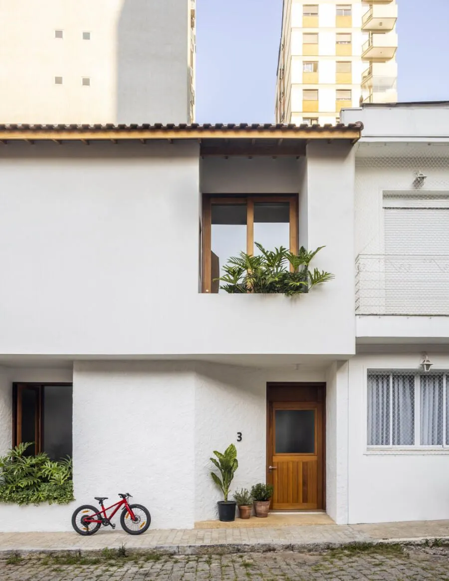 Quem assina essa transformação é a Península Arquitetura, sob direção de José Guilherme Carceles, Eugenio Conte e Gabriel Cesar. A estratégia começou pela unificação não só estrutural, mas também visual. A fachada foi redesenhada com proporções mais equilibradas, assumindo uma linguagem única, muito alinhada à atmosfera das vilas paulistanas.