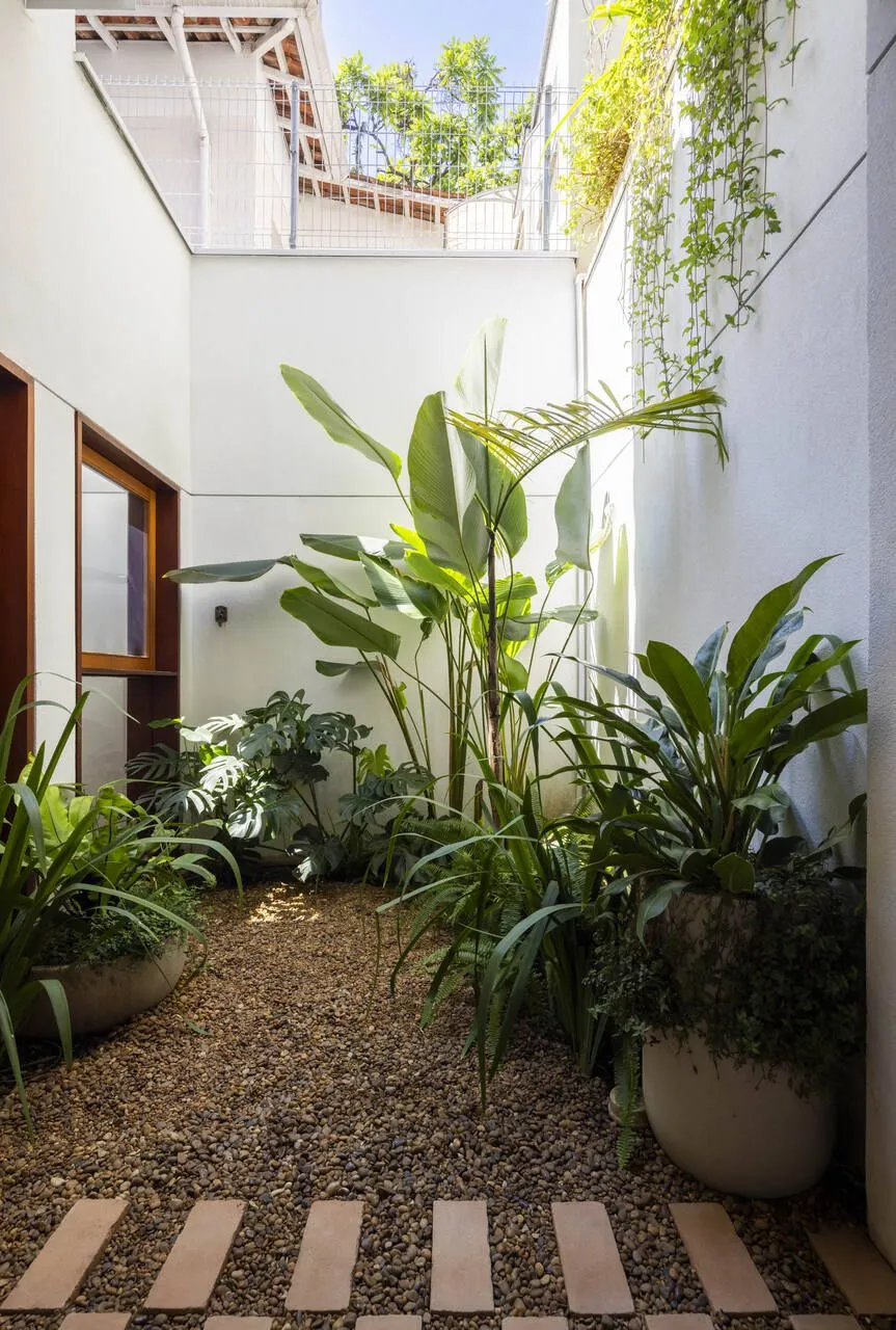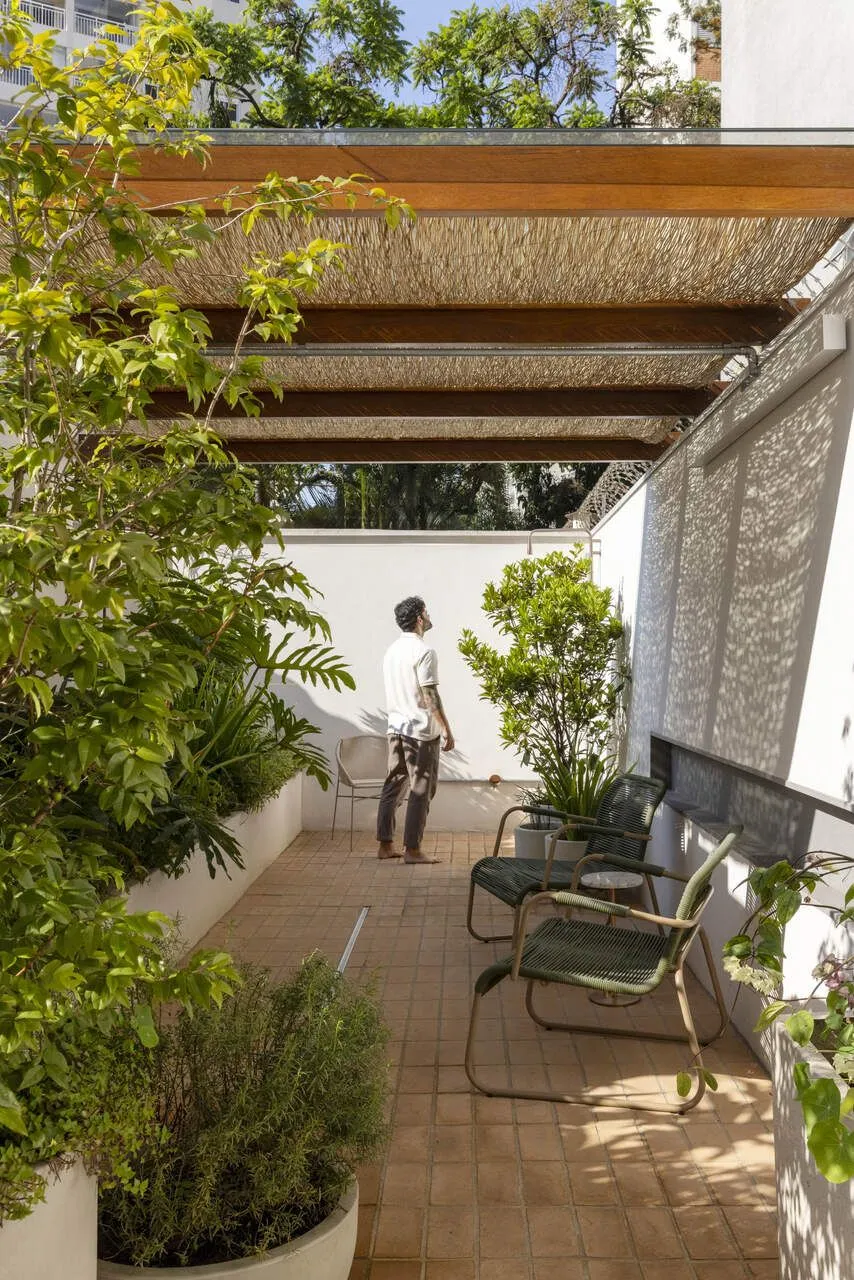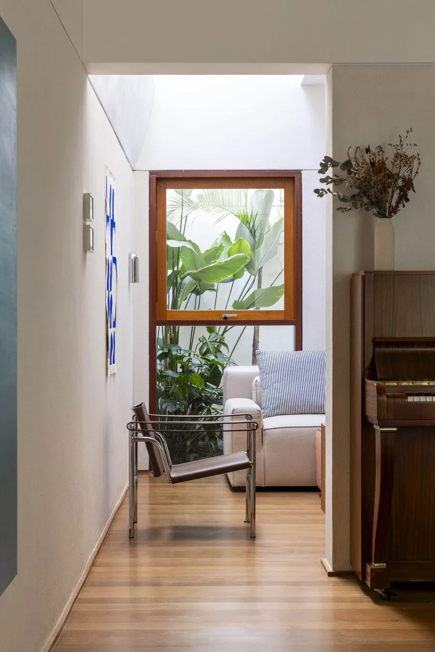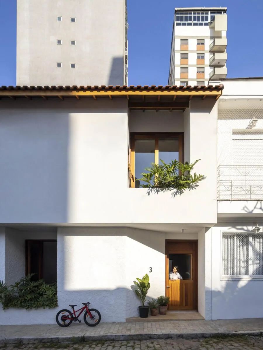 Quem assina essa transformação é a Península Arquitetura, sob direção de José Guilherme Carceles, Eugenio Conte e Gabriel Cesar. A estratégia começou pela unificação não só estrutural, mas também visual. A fachada foi redesenhada com proporções mais equilibradas, assumindo uma linguagem única, muito alinhada à atmosfera das vilas paulistanas.
