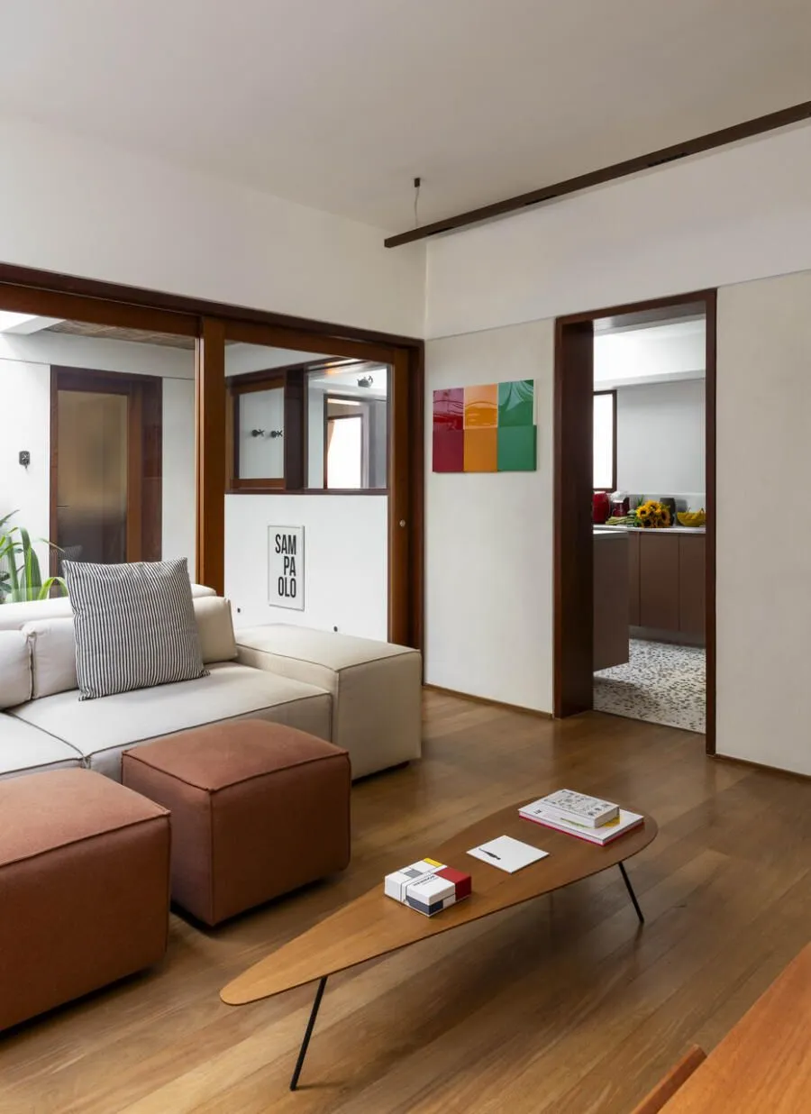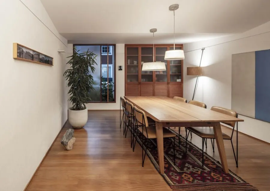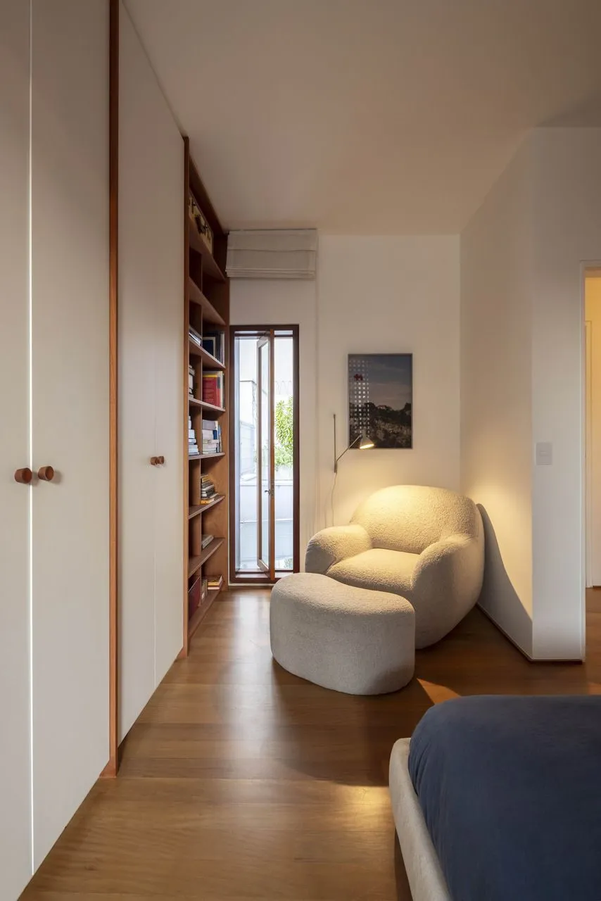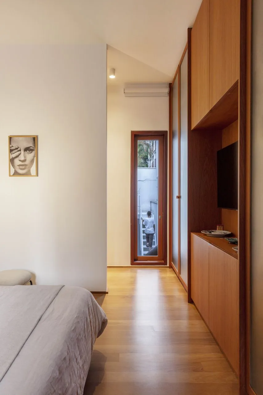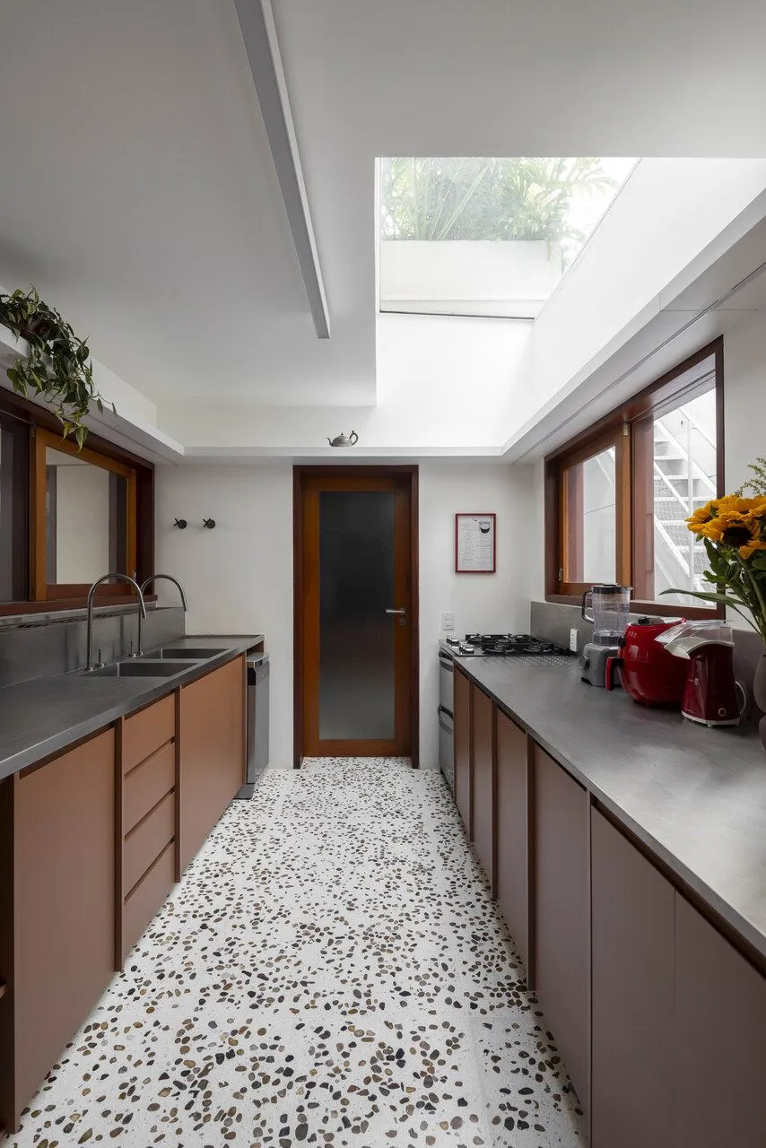 Quem assina essa transformação é a Península Arquitetura, sob direção de José Guilherme Carceles, Eugenio Conte e Gabriel Cesar. A estratégia começou pela unificação não só estrutural, mas também visual. A fachada foi redesenhada com proporções mais equilibradas, assumindo uma linguagem única, muito alinhada à atmosfera das vilas paulistanas.
