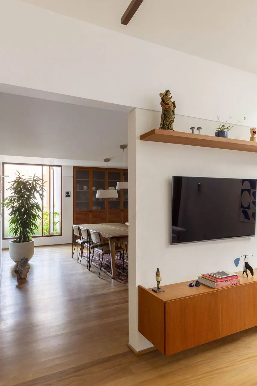 A escolha dos materiais ajuda a amarrar tudo: madeira, tijolos cerâmicos, granilite e paredes brancas constroem uma base neutra, equilibrada e durável. Nada chama mais atenção do que o necessário — e isso faz com que o conjunto funcione com naturalidade. No vídeo completo do Open House, dá para entender melhor como essas decisões foram tomadas e perceber nuances que, ao vivo, fazem toda a diferença. Vale assistir com calma.
