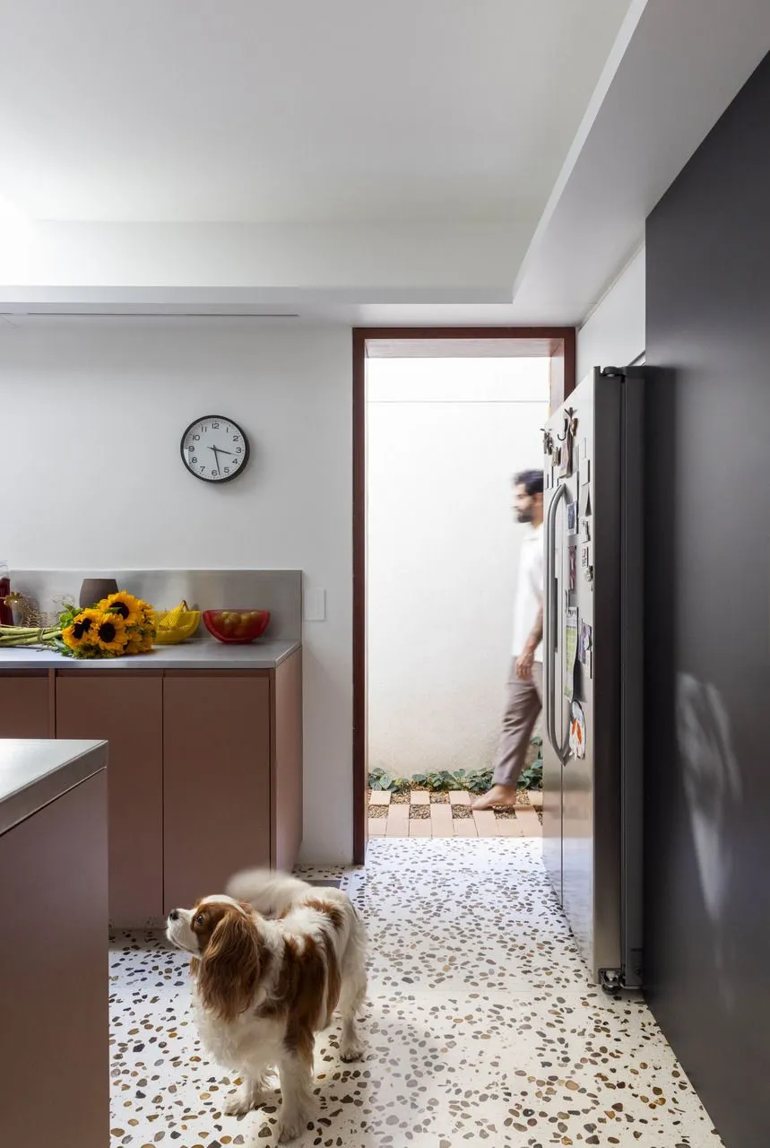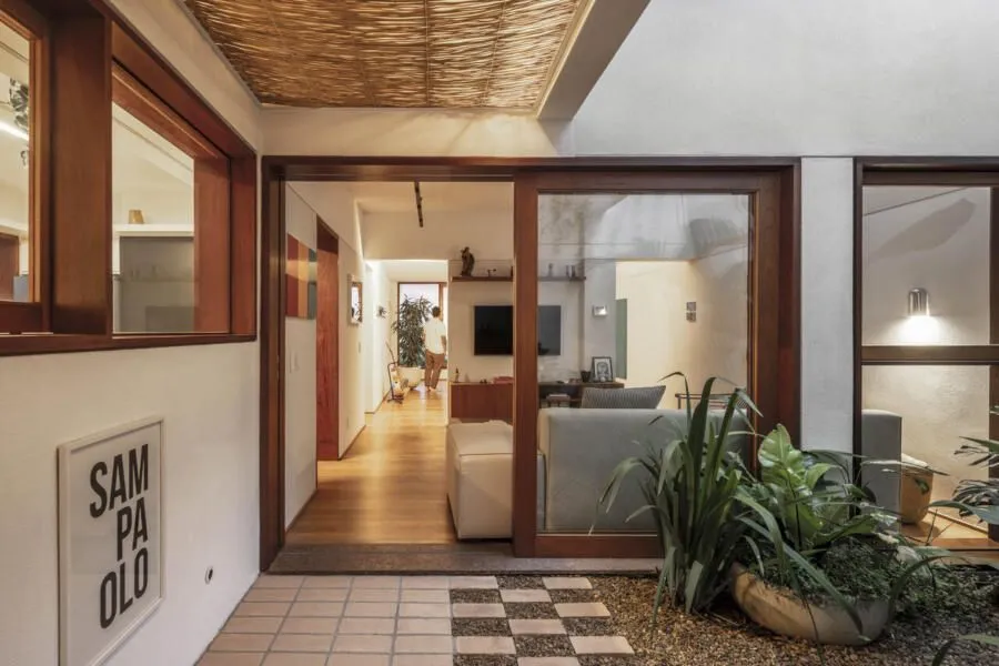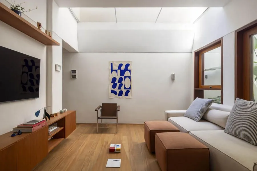 Entrei nessa casa de vila, em Perdizes, tentando imaginar onde terminava uma construção e começava a outra — e não consegui. Esse talvez seja o maior mérito do projeto apresentado no Open House: fazer desaparecer completamente a divisão entre duas casas geminadas que, um dia, já foram cheias de desníveis, remendos e soluções improvisadas.